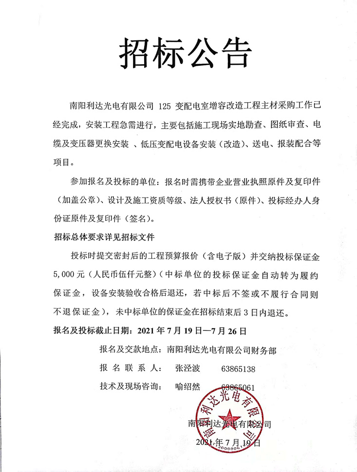 - (2025-07-17)利達光電公開招聘財務(wù)部部長擬錄用人員公示