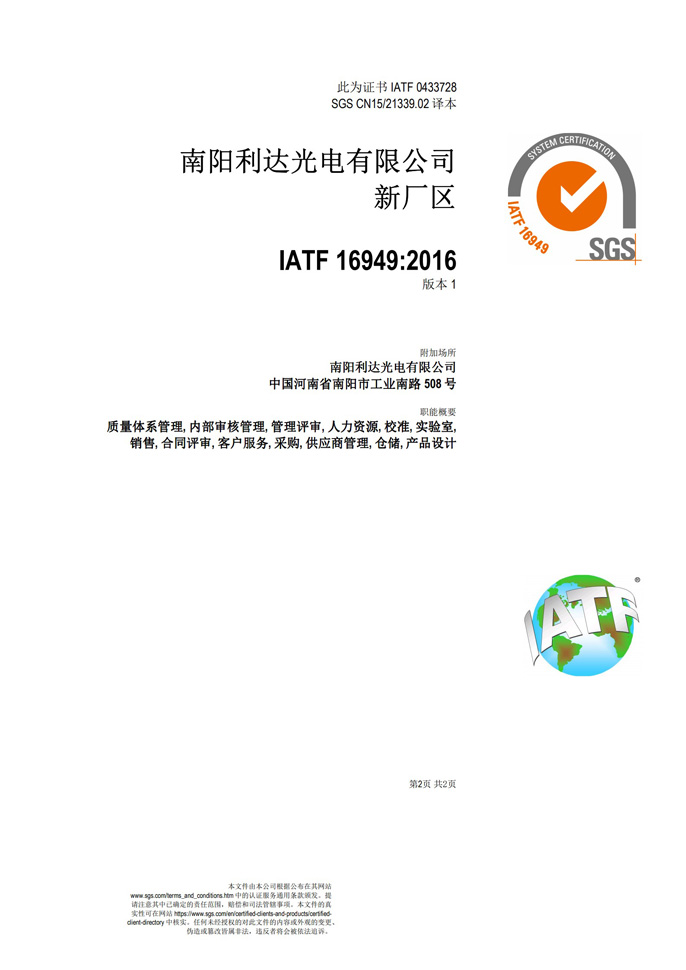 Copyright (C) www.jailson-newss.com.All Right Reserved 版權所有:南陽利達光電有限公司